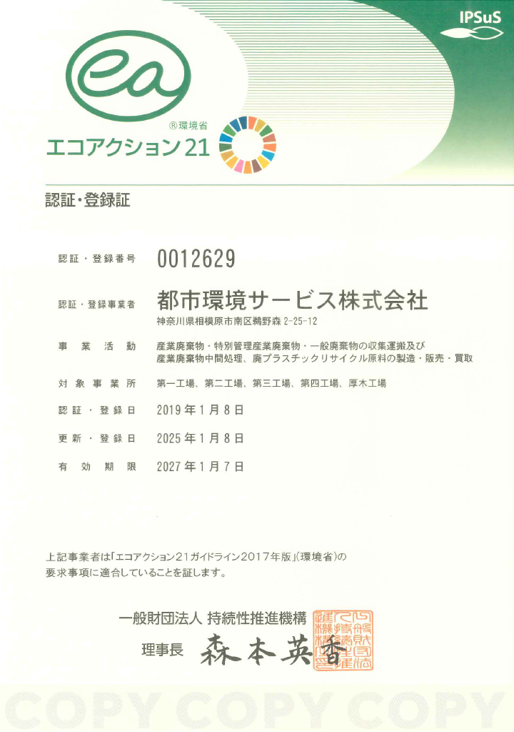 エコアクション21を更新しました 投稿日 2025年11月11日 著者 eco-toshikan カテゴリー infomation エコアクション21の認証・登録を更新しました。 こちらから環境経営レポートがご覧いただけます。 都市環境サービスは今後も環境経営方針に沿って日々活動していきます。