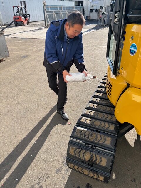 ショベルカーを導入しました 投稿日 2026年1月20日 著者 eco-toshikan カテゴリー infomation このたび、当社に新しいショベルカーが仲間入りしました。 車体には当社の社名ロゴが入り、現場でもひときわ目を引く、かっこいい仕上がりになっています。 社員一同、気持ちも新たに引き締まります。 また、導入にあたり社長がお祓いを行い、お神酒をかけて安全祈願をしました。 日々の業務が安全に、そして滞りなく進むよう、しっかりと願いを込めています。 新しいショベルカーの導入により、作業効率も向上し、これまで以上にパワーアップした業務を行ってまいります。 今後ともどうぞよろしくお願いいたします。